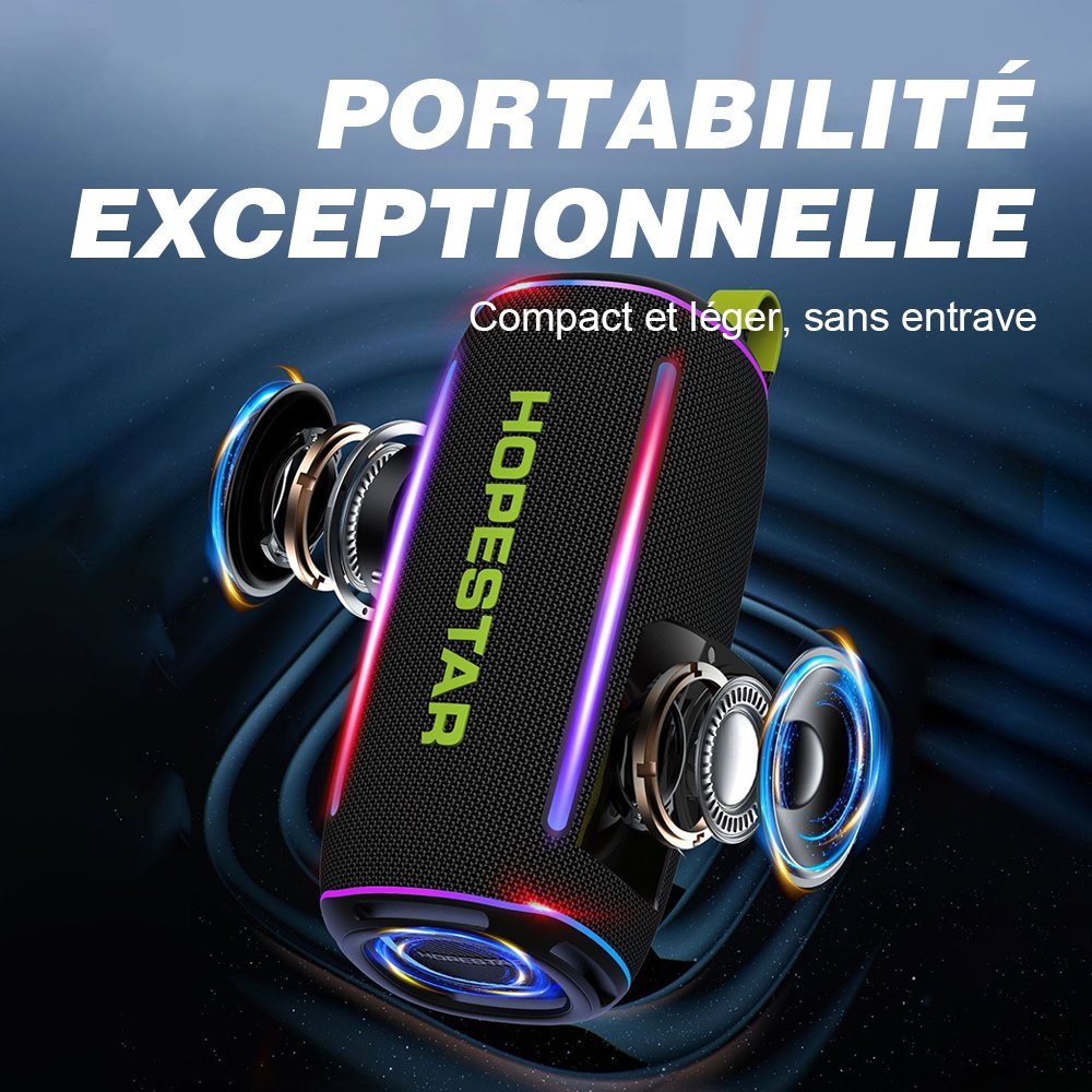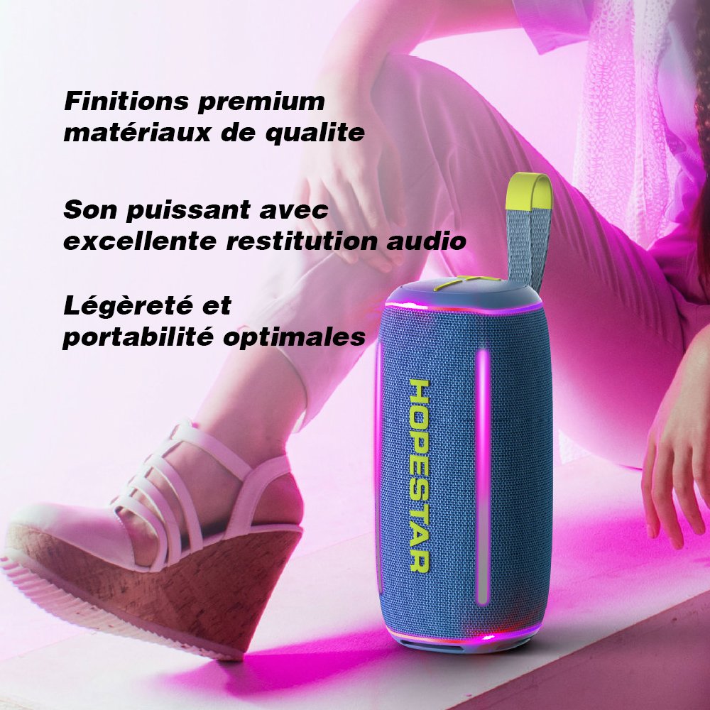 Conçue pour allier style et robustesse, cette enceinte Bluetooth possède une esthétique moderne, s’intégrant parfaitement à tous les environnements. Son boîtier résistant aux divers aléas du quotidien garantit une utilisation durable sans compromettre la qualité audio. De plus, sa portabilité vous permet de l’emporter partout où vous en avez besoin, qu’il s’agisse d’un barbecue, d’une plage ou simplement d’une soirée relaxante à la maison.