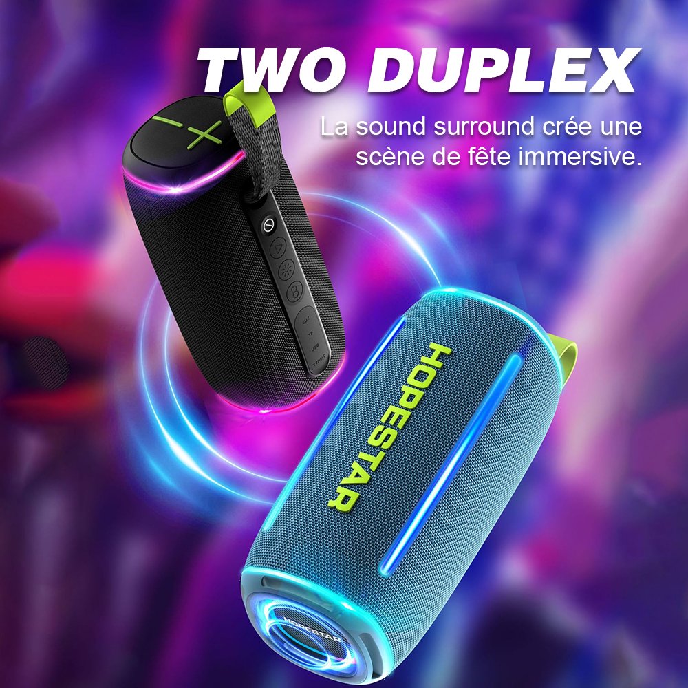 Profitez de la technologie Bluetooth intégrée, qui permet une connexion rapide et stable à vos appareils. Qu’il s’agisse de votre smartphone, tablette ou ordinateur, cette enceinte s’adapte parfaitement à différents appareils avec une portée étendue et une facilité d’utilisation optimisée. Le double haut-parleur procure un son équilibré et puissant, que vous écouteriez à faible volume ou dans des espaces ouverts.