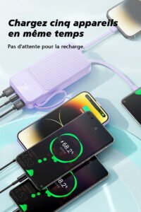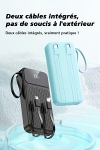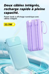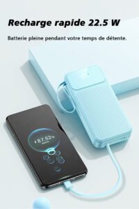 Sortie : sortie de charge rapide 22,5 W avec câble TYPE-C intégré, sortie 2,1 A avec câble Apple