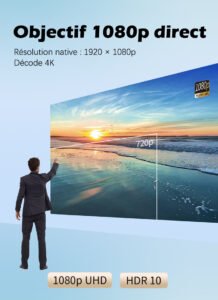 Vidéoprojecteur Intelligent, 1080P Full HD, Bureau & Salle de Jeux
